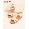 红蜻蜓凉鞋女2023夏季透气露趾皮凉鞋软底妈妈鞋 WTK23336米白色38