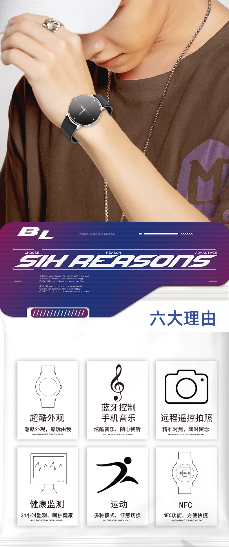 商品名称:无创血糖高精度免扎针智能手环血压血氧心率报警老人健康多功能门禁运动睡眠监测仪男女ADZ腕表 时尚黑