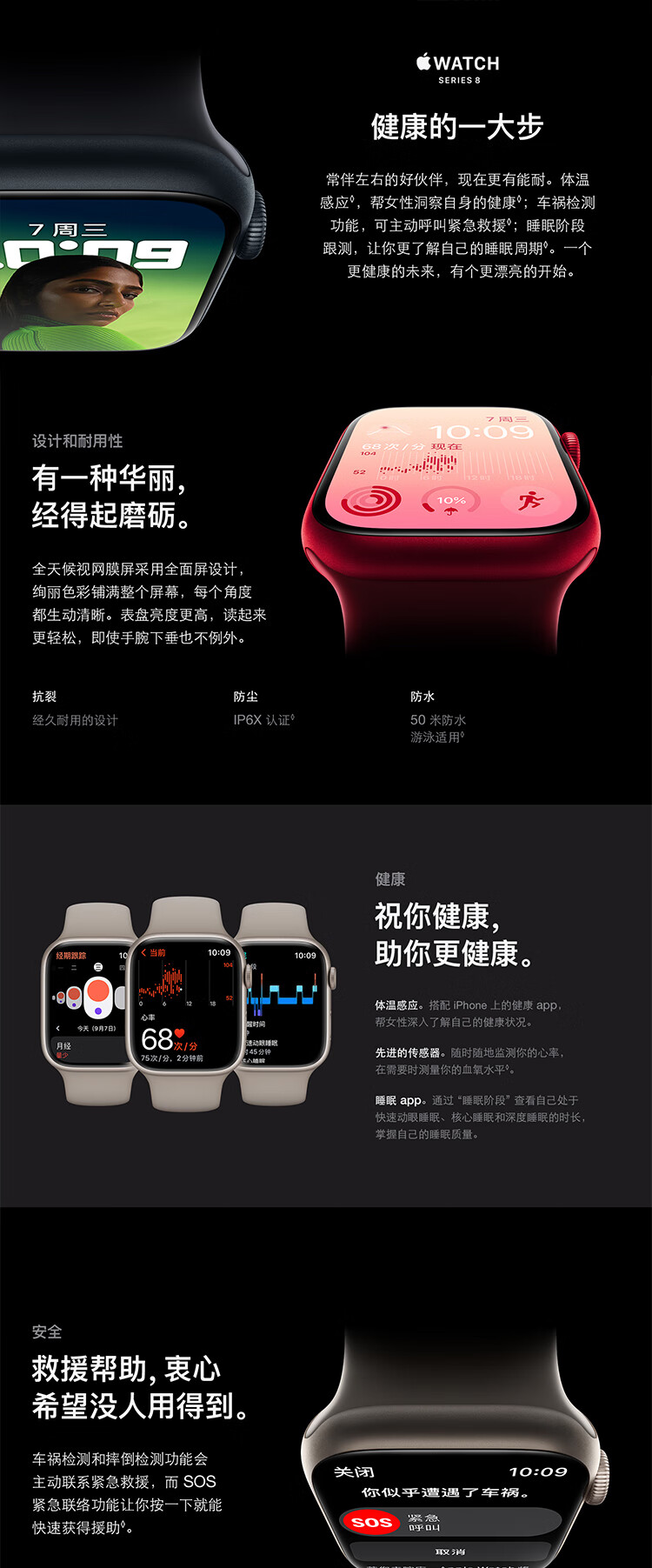 商品名称:Apple Watch Series 8 智能手表GPS款41毫米星光色铝金属表壳星光色运动型表带MNP63CH/A