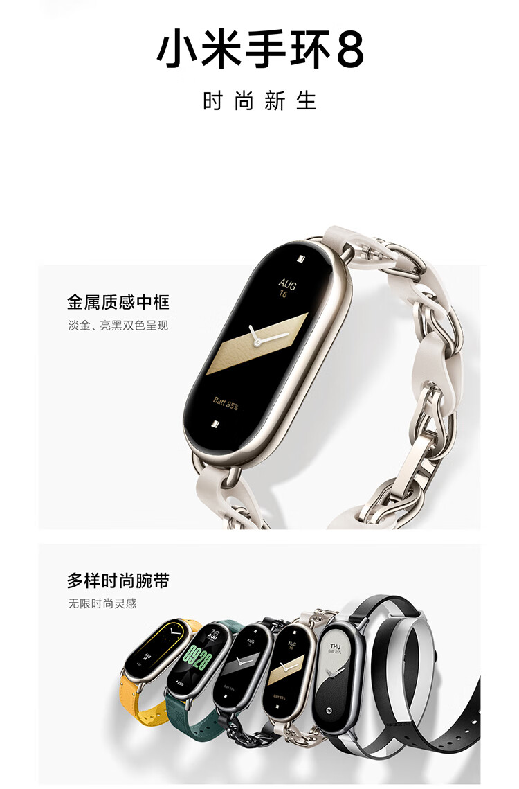 商品名称:小米(MI)手环8 150种运动模式 血氧心率睡眠监测 多样快拆腕带 小米手环 智能手环 运动手环 亮黑色